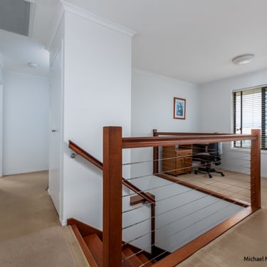A dedicated office nook at the top of the internal staircase – perfect for remote work or studying.