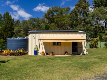 Water: Four 22,500-litre tanks, two smaller tanks, and a quality bore