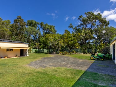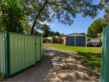 Property is well-hidden from the front street with Colorbond fencing and double gate access, ensuring privacy and security.