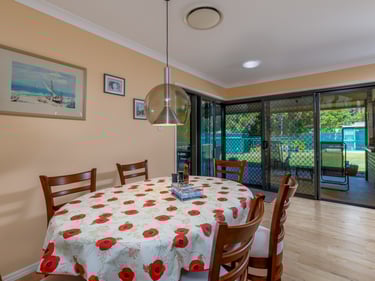 Welcome to your own private coastal retreat! Situated on a sprawling 4179m² block of land & backing onto a serene saltwater tidal creek, virtually fish ,crab and prawn from your own backyard.